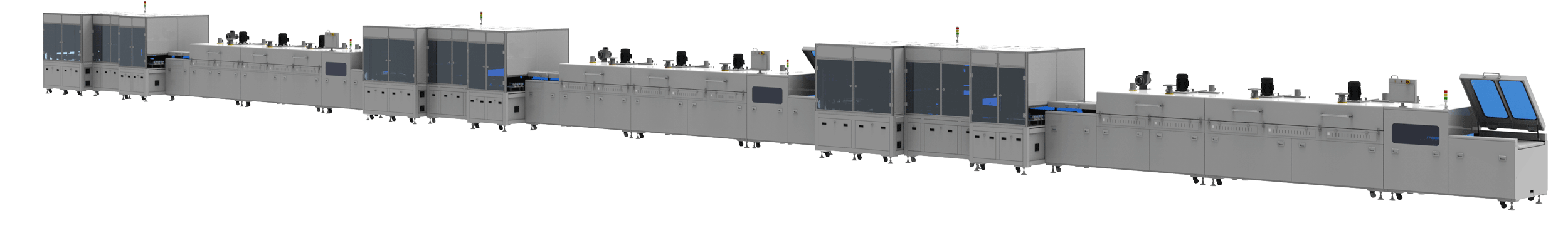 适用于:本产线适用于笔记本电脑屏、电视机屏、车载一体屏等大尺寸显示屏的丝印、烘烤、在线检测等自动化生产作业。